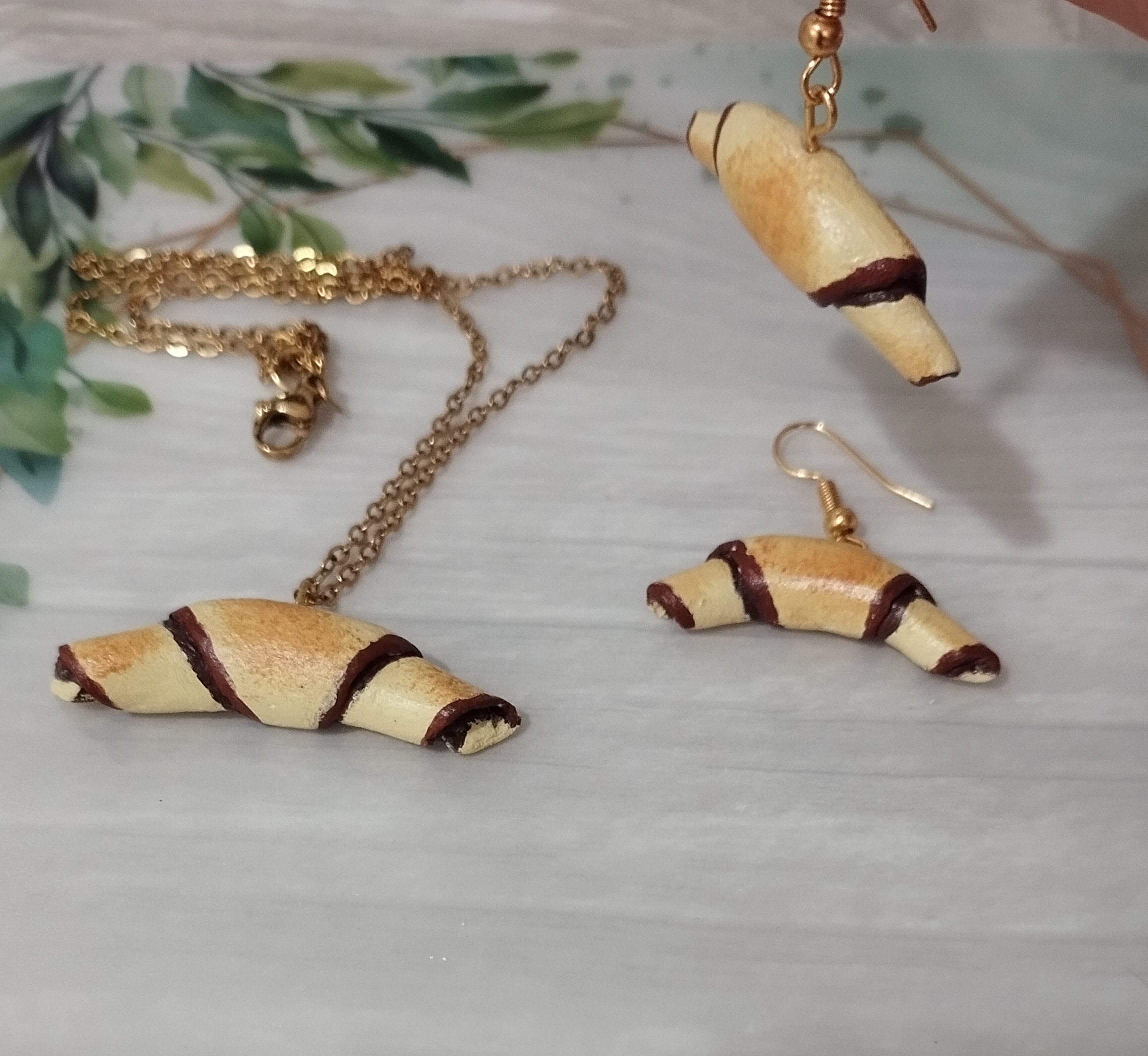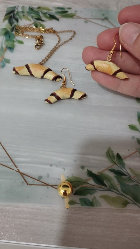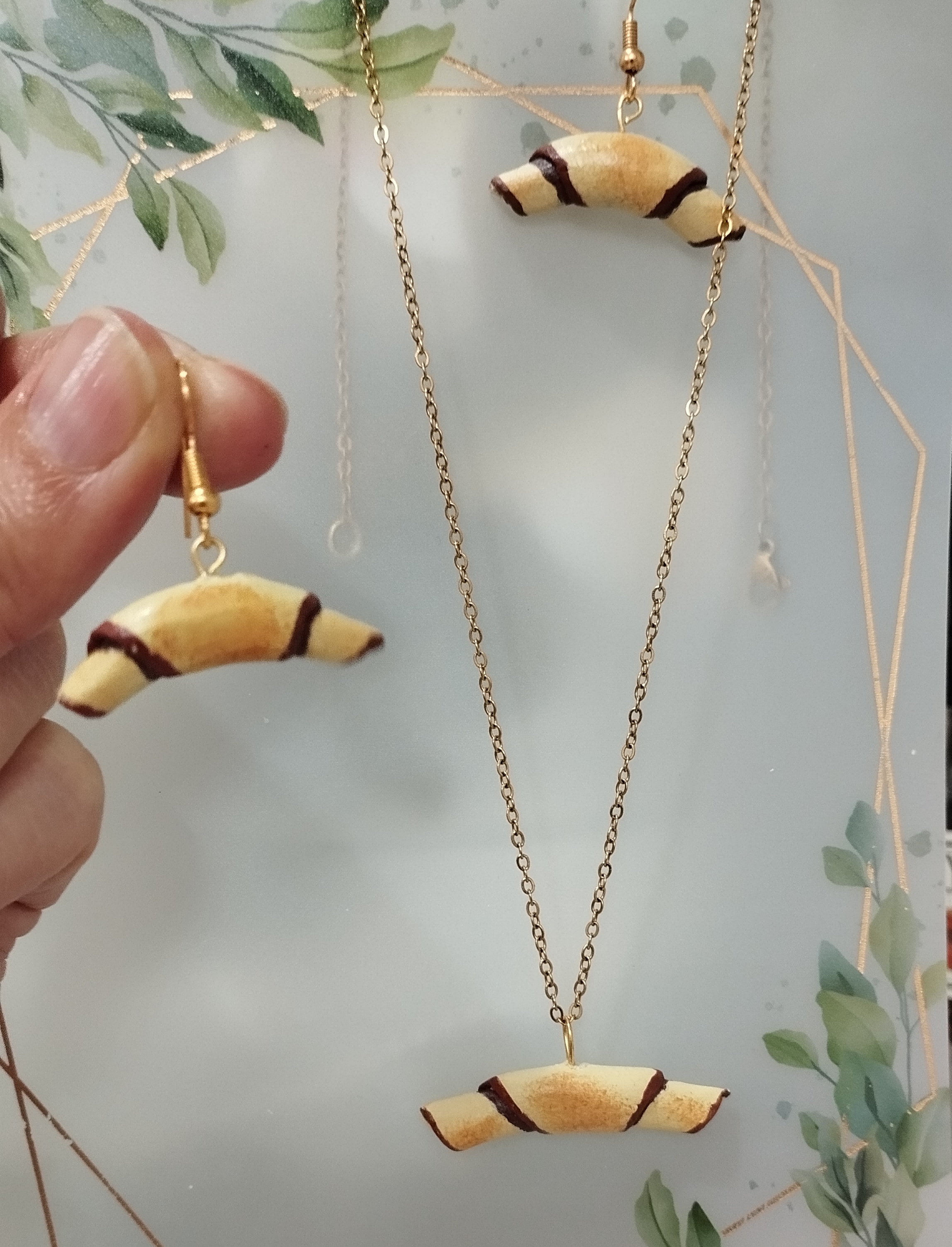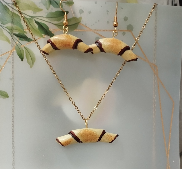 گوشواره و گردنبند طرح کروسان یه انتخاب و هدیه ای خاص و زیباست. طرح فانتزی کروسان برای همه ی افراد و سنین جذابه.این ست کاملا دستساز هست و امکان اجرا طرح و رنگ دلخواه شما فراهم است.برق و پوشش نهایی با اسپری کیلر.میتونید همراه زنجیر و بدون زنجیر گردنبند ثبت سفارش کنید.ارسال و بسته بندی اصولی و ایمن انجام میشه.