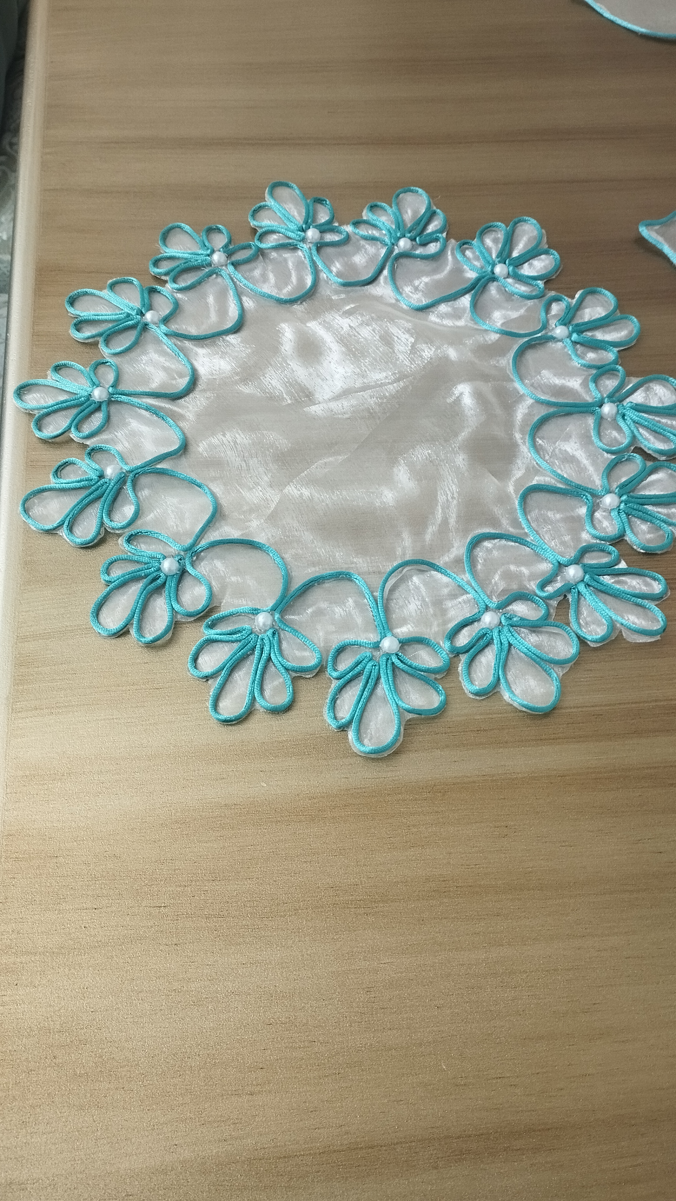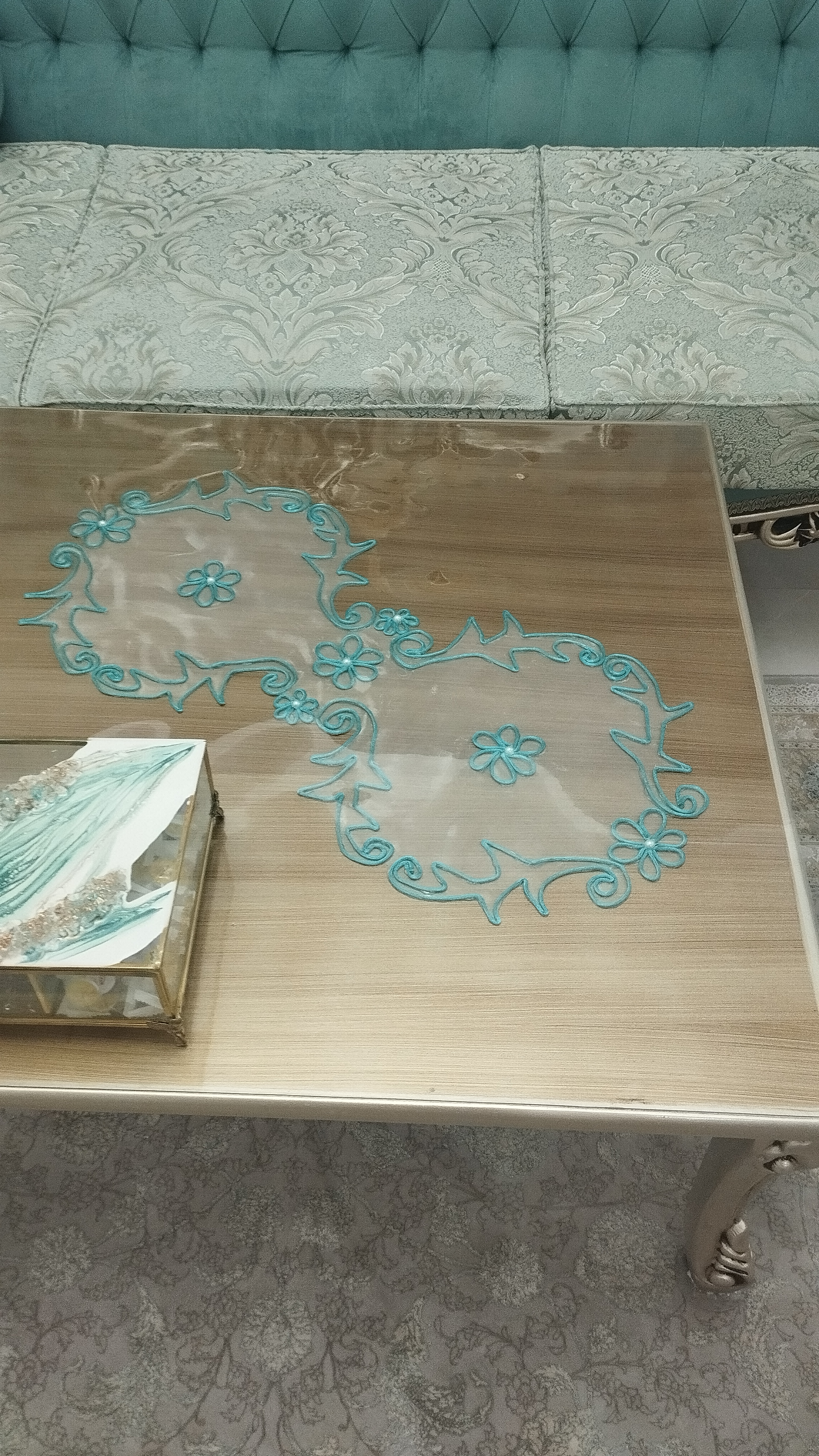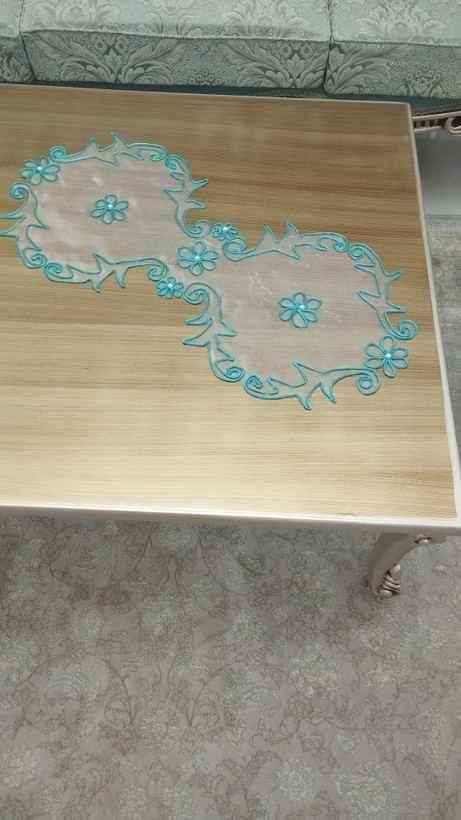 ست رومیزی طرح گل مرواریدی شامل یک عدد رومیزی جلومبلی و دوعدد رو عسلی.شش عدد زیر بشقابی،یک عدد رانر ناهارخوری. امکان سفارش بصورت جداگانه و در رنگ دلخواه شما متناسب با دیزاین منزلتون وجود دارد.قبل از شروع کار تصویر رنگ موردنظر ارسال میشه و هماهنگ میشه.کاملا دستساز. از جنس تورشیشه ای کاملا شفاف و قیطان با کیفیت میباشد. کار دستساز است زمان آماده سازی سه روز میباشد.سریعا بعد از اماده سازی ارسال میگردد.کار دستساز هست بهتره اگر لک یا کثیف شد قسمتی که کثیف شده رو اسپری لکه بر بزنید و بگیرید زیر اب قابلیت شستشو تو ماشین رو نداره.مثل همه ی رومیزی ها بهتره روش شیشه یا طلق بندازید تا هم میزتون تمیز بمونه هم رومیزی همیشه شیک بمونه🤌عکسی که رو میز طلق هست هم گزاشتم.