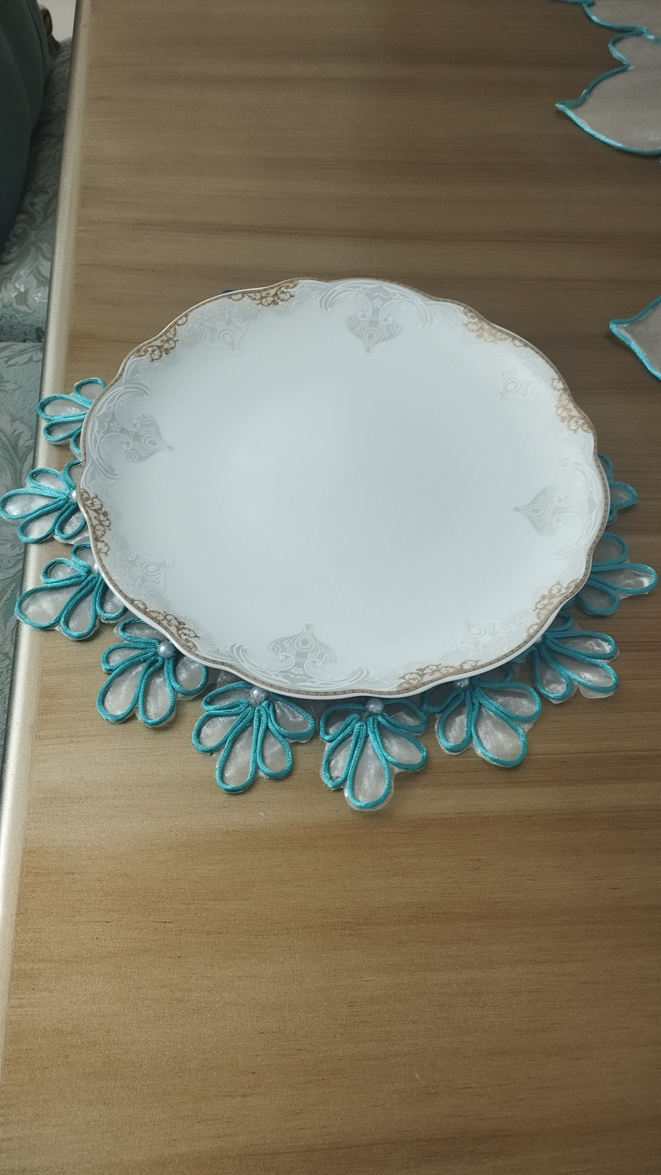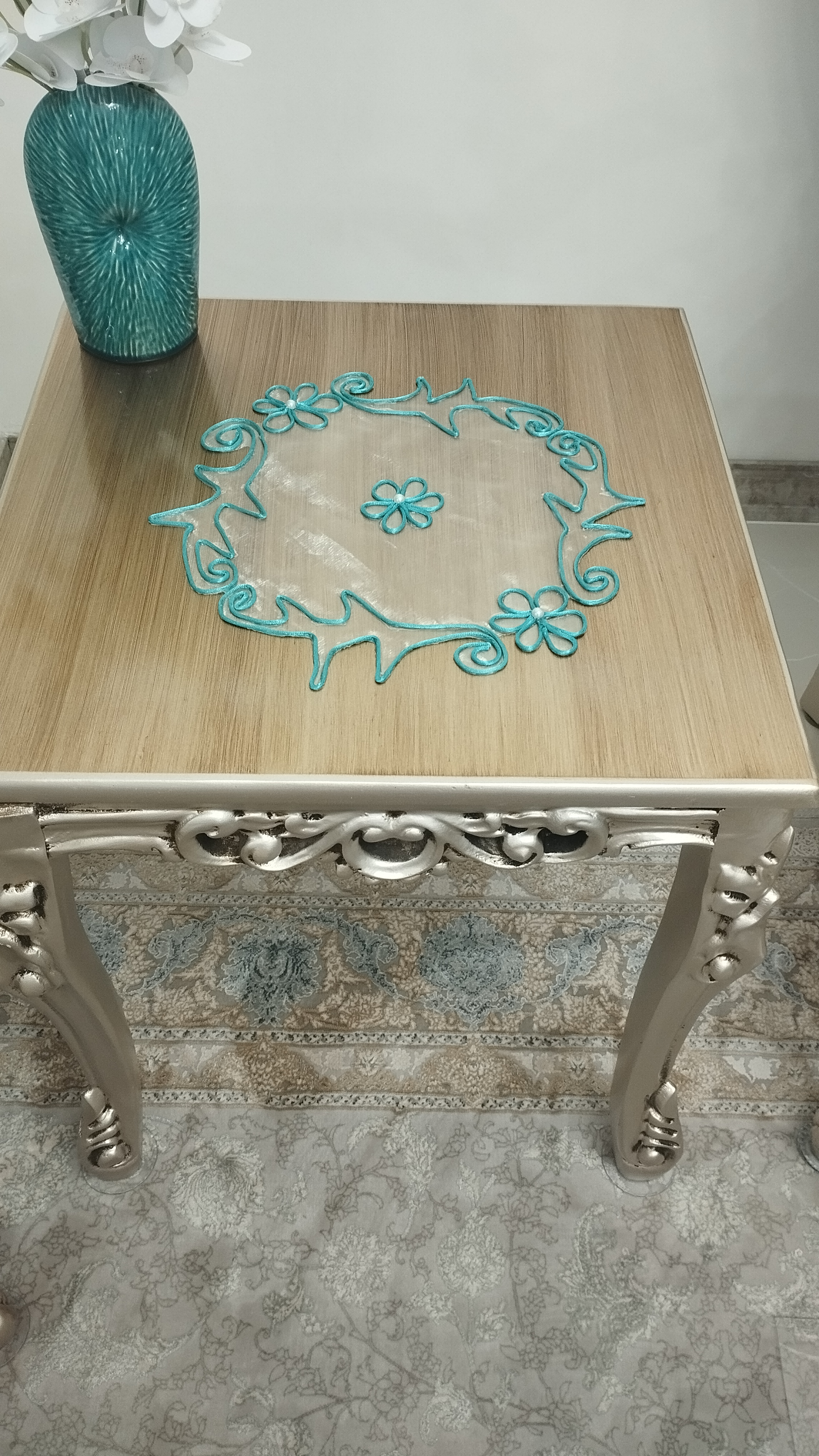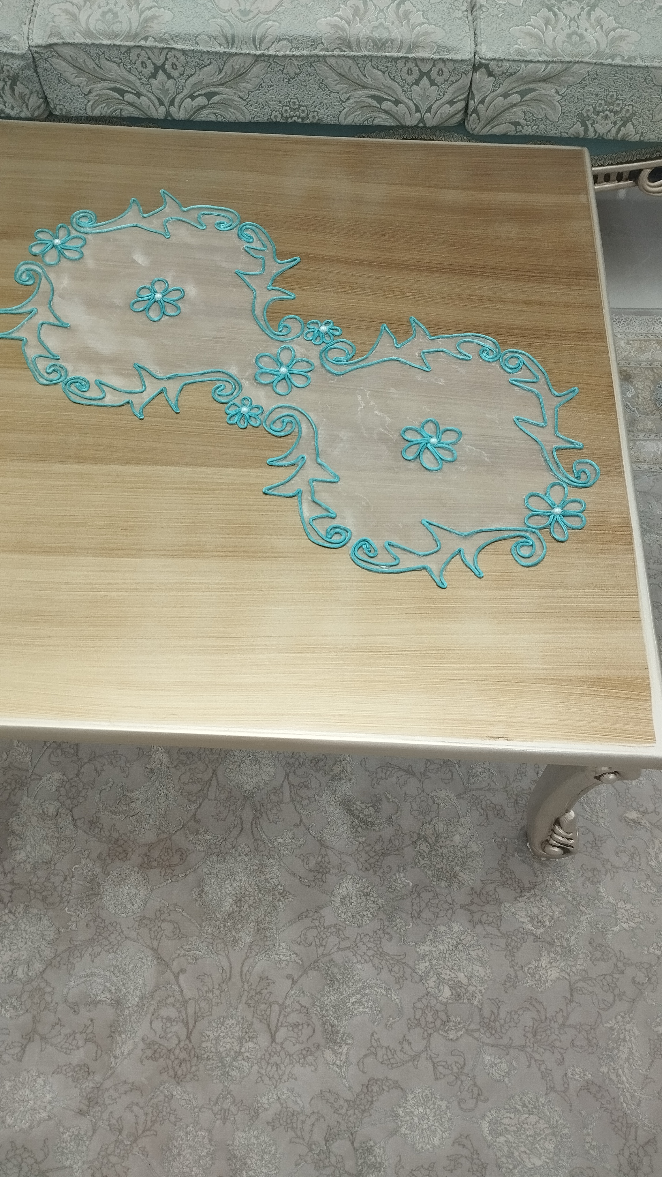 ست رومیزی طرح گل مرواریدی شامل یک عدد رومیزی جلومبلی و دوعدد رو عسلی.شش عدد زیر بشقابی،یک عدد رانر ناهارخوری. امکان سفارش بصورت جداگانه و در رنگ دلخواه شما متناسب با دیزاین منزلتون وجود دارد.قبل از شروع کار تصویر رنگ موردنظر ارسال میشه و هماهنگ میشه.کاملا دستساز. از جنس تورشیشه ای کاملا شفاف و قیطان با کیفیت میباشد. کار دستساز است زمان آماده سازی سه روز میباشد.سریعا بعد از اماده سازی ارسال میگردد.کار دستساز هست بهتره اگر لک یا کثیف شد قسمتی که کثیف شده رو اسپری لکه بر بزنید و بگیرید زیر اب قابلیت شستشو تو ماشین رو نداره.مثل همه ی رومیزی ها بهتره روش شیشه یا طلق بندازید تا هم میزتون تمیز بمونه هم رومیزی همیشه شیک بمونه🤌عکسی که رو میز طلق هست هم گزاشتم.