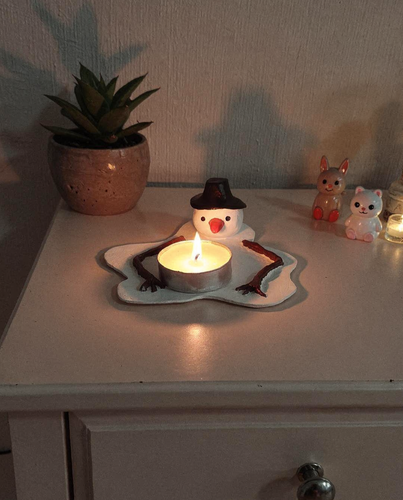 جاشمعی فانتزی دستساز آدم برفی مدل دل گرم